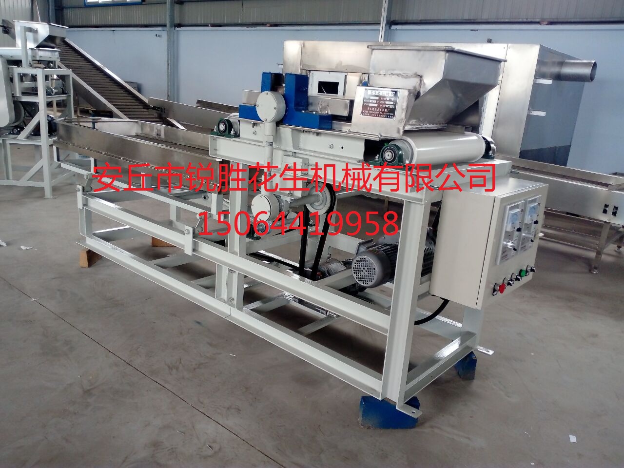 花生米切碎機(jī) 花生米切碎機(jī)是我廠新研制的花生芝麻切碎設(shè)備,有投料,提升,切碎,振動(dòng)分級(jí)等部分組成,可對(duì)各種規(guī)格芝麻、花生米、大豆、藥材等粒狀、片狀、條狀物料進(jìn)行切碎分級(jí)。該機(jī)優(yōu)點(diǎn)是產(chǎn)量高、切后無油膩。接觸物料部分、振動(dòng)篩、框架全部用不銹鋼制作。振動(dòng)篩為平篩,分別有4個(gè)出料口,可分為直徑2-4.5毫米和粉末。電纜用穿線槽保證安全美觀,各焊縫保證光滑漂亮。顆粒均勻,無長條。 總功率 :2.2千瓦, 電壓: 380V 外形尺寸:2800*1100*1500 產(chǎn)量: 每小時(shí)300公斤左右 顆粒機(jī) 總功率:2.2kw 產(chǎn)量:300kg/h 電壓:380v 外型尺寸:1700*800*2200 本顆粒機(jī)是本廠新設(shè)計(jì)開發(fā)的花生切碎機(jī),效率高,噪音低,顆粒均勻,無油膩,是供應(yīng)各食品廠花生顆粒的專業(yè)設(shè)備!接觸物料部分。振動(dòng)篩全部為不銹鋼制作。振動(dòng)篩為平篩,分別有三個(gè)出料口,可分為直徑2—4.5毫米合格品大于等于70%。顆粒形狀規(guī)則均勻,無長條。電纜用穿線槽保證安全美觀,各焊縫保證光滑漂亮。 花生粉碎機(jī)專門針對(duì)花生、杏仁、核桃、芝麻、香料、食品調(diào)味料等含油性物質(zhì)所研發(fā)設(shè)計(jì)的不銹鋼型連續(xù)進(jìn)料、出料粉碎機(jī)。 1、機(jī)器外殼為不銹鋼材質(zhì),符合美觀與衛(wèi)生標(biāo)準(zhǔn)。 4 、底座可根據(jù)客戶要求有4個(gè)可移動(dòng)萬向輪,移動(dòng)更方便。 功率: 750W 轉(zhuǎn)速: 960r/min 電壓: 380V 產(chǎn)量: 200 kg/h 重量:80KG 體積:長0.5米寬0.5米高1米 本機(jī)操作簡(jiǎn)單,配有倒順開關(guān),通電后調(diào)節(jié)開關(guān)正反轉(zhuǎn),機(jī)器運(yùn)行后將物料倒入進(jìn)料斗中調(diào)節(jié)把手即可。顆粒大小可根據(jù)客戶要求調(diào)節(jié)手把。 本機(jī)采用往復(fù)刀式切碎、振動(dòng)分級(jí),從而達(dá)到切碎均勻。不產(chǎn)生擠壓出油現(xiàn)象、分級(jí)標(biāo)準(zhǔn)、成品率高、無污染,是目前切碎的最理想設(shè)備。可對(duì)花生米、南瓜籽、核桃、榛子、杏仁、豆類、小麥等粒狀和條狀物料進(jìn)行切碎和分級(jí)?筛 據(jù)客戶需要選擇多級(jí)篩。 產(chǎn)品特點(diǎn):本機(jī)主要適應(yīng)于花生仁、果仁類切碎,由振動(dòng)上料、切碎、分級(jí)三部分組成,其中振動(dòng)上料能使花生米均勻撒在挖料斗上,有利于滾刀均勻切碎,分級(jí)部分使用螺旋式滾筒,配以不同規(guī)格篩網(wǎng),從而達(dá)到需求規(guī)格。本機(jī)特別:產(chǎn)量高、粒度均勻、耗料少、噪音小、花生碎不返油 專門針對(duì)杏仁、核桃、花生、芝麻、香料、食品調(diào)味料等含油性物質(zhì)所研發(fā)設(shè)計(jì)的不銹鋼型連續(xù)進(jìn)料、出料粉碎機(jī)。 1、機(jī)器外殼與粉碎槽均為S304不銹鋼材質(zhì)經(jīng)過拋光研磨處理,符合美觀與衛(wèi)生標(biāo)準(zhǔn)。 2、外形設(shè)計(jì)符合使用者需求如備用濾網(wǎng)與毛刷等零件,可放置在儲(chǔ)物實(shí)內(nèi),不占空間。 3、機(jī)器上蓋間作進(jìn)料座,進(jìn)料更方便。 4 、更換濾網(wǎng)快速方便。 5、清洗粉碎槽內(nèi)粉粒子,快速簡(jiǎn)單。 6、特殊刀具設(shè)計(jì),使用料速度加快。粉碎含油量越高的物料,用粗篩網(wǎng)。反之,粉碎含油量低或者不含油的物料,可以用更細(xì)的篩網(wǎng)。 7、采用強(qiáng)力750W高速馬達(dá),安靜,有力。 8、電路裝有過負(fù)載斷路開關(guān),可預(yù)防馬達(dá)線圈燒毀。 產(chǎn)品參數(shù): 重量:35Kg 體積:455×360×480mm 功率: 750W 轉(zhuǎn) 速: 3450r/min電 壓: 220V 產(chǎn) 量: 1015 kg/h 重量:34KG。 該機(jī)是花生米切碎,杏仁切碎的專業(yè)設(shè)備由上料、切碎、分級(jí)組合,采用國內(nèi)多項(xiàng)科學(xué)技術(shù),經(jīng)過多年實(shí)驗(yàn)改進(jìn)、使用驗(yàn)證,用戶反映其性能良好,具有堅(jiān)固耐用、結(jié)構(gòu)緊湊、操作方便、生產(chǎn)效率高、移動(dòng)方便等優(yōu)點(diǎn)。是目前國內(nèi)較為先進(jìn)的機(jī)械產(chǎn)品。。 該機(jī)是將脫皮后的花生米通過提升機(jī)進(jìn)入切刀腔內(nèi),切碎過程共分為二級(jí)切碎:半;ㄉ捉(jīng)過一級(jí)切碎刀切成粗粒,然后進(jìn)入二級(jí)切刀切成較細(xì)碎粒,在振動(dòng)篩的作用下將花生粒分級(jí)為4個(gè)大小均勻的規(guī)格,是花生米切粒的理想設(shè)備。